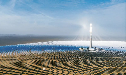 在甘肅省敦煌市向西約20公里處,被稱為“超級(jí)鏡子發(fā)電站”的敦煌100兆瓦熔鹽塔式光熱電站在戈壁灘上閃耀。這是我國(guó)目前建成規(guī)模最大、吸熱塔最高、可24小時(shí)連續(xù)發(fā)電的100兆瓦級(jí)熔鹽塔式光熱電站。新華社記者馬希平/攝
