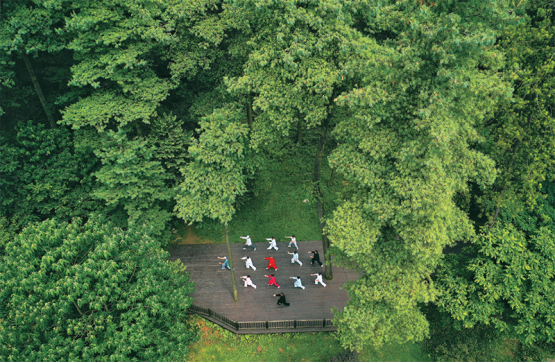 2022年以來,貴州省貴陽市以長坡嶺國家級森林公園為試點(diǎn),建設(shè)貴州首個“林長制”主題公園,開展習(xí)近平生態(tài)文明思想、林長制政策、森林資源保護(hù)發(fā)展政策等宣傳,促進(jìn)形成全社會愛林、護(hù)林、興林的良好氛圍。圖為2022年7月13日,市民在長坡嶺國家級森林公園里健身(無人機(jī)照片)。新華社記者楊文斌/攝
