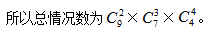 例題2:將編號1到9的9個小球,按照2個、3個、4個的數(shù)量分給3個人,有多少種分法?( )