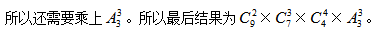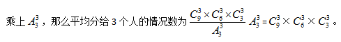 但是因為這個題分堆后還需要再分給3個人。甲拿①②,乙拿③④⑤,丙拿⑥⑦⑧⑨和甲拿③④⑤,乙拿⑥⑦⑧⑨,丙拿①②屬于不同情況,所以需要考慮順序,