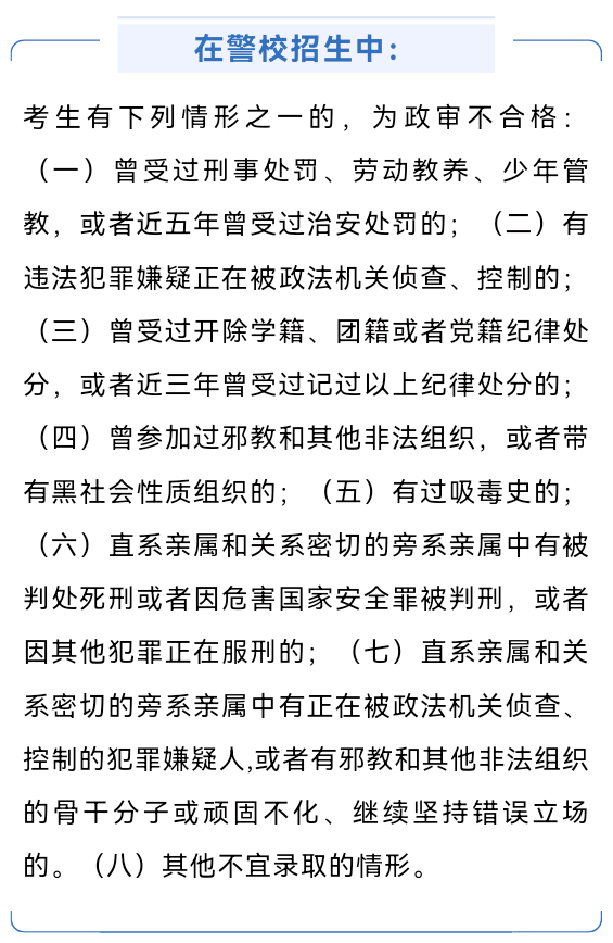 當(dāng)然對(duì)于受過刑罰處罰的人,除了本人有很多職業(yè)不能從事以外,法律對(duì)其子女的擇業(yè)也有很多限制。例如服兵役、報(bào)考警校等。