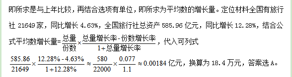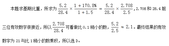 我們在做題過程中首先根據(jù)問題確定考查考點,然后將材料中的數(shù)據(jù)代入公式,最后結合選項估算出結果。我們通過下面的例題看看計算過程如何確定最終答案。