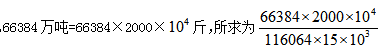 產(chǎn)量單位為“萬噸”,要轉化為“斤”,1噸=2000斤,66384萬噸=