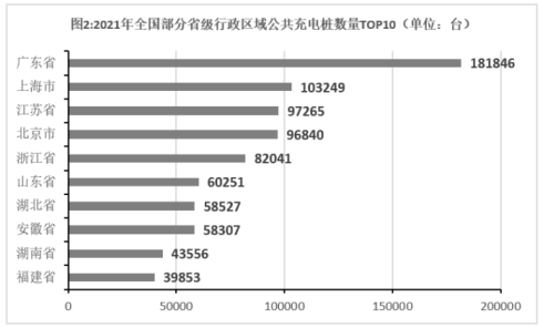 B.2021年我國(guó)公共充電樁數(shù)量超過5萬(wàn)臺(tái)的省級(jí)行政區(qū)域有7個(gè)