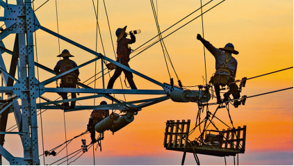 提高人民生活品質(zhì)是暢通國內(nèi)大循環(huán)的出發(fā)點(diǎn)和落腳點(diǎn),也是國內(nèi)國際雙循環(huán)相互促進(jìn)的重要聯(lián)結(jié)點(diǎn)。圖為2022年8月18日,在江蘇省鎮(zhèn)江市220千伏天王至江寧牽引站線路工程現(xiàn)場,江蘇省送變電有限公司施工人員在高溫酷暑下加緊建設(shè),全力保障企業(yè)生產(chǎn)、居民生活用電需求。中新社發(fā)史俊/攝