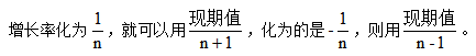2)現(xiàn)期值、增長率一大一小時,(1+增長率)在1.5倍以內時忽略,一般情況只需比較:現(xiàn)期值×增長率,乘積大的增長量大。