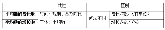 總結:最后我們再來回顧一下平均數的增長量和平均數的增長率的異同: