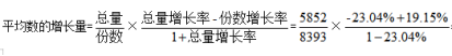 小結:當題干中研究的主體是平均數,問法為增長率為百分之幾?則可知該題目在求解平均數的增長率,可直接套用公式求解。