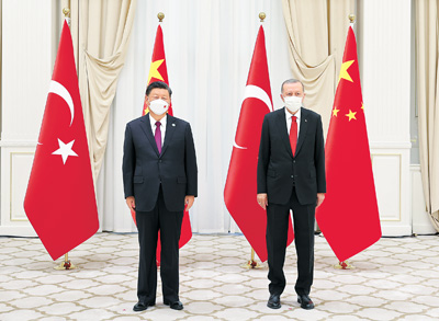 本報烏茲別克斯坦撒馬爾罕9月16日電(記者張朋輝、隋鑫)當(dāng)?shù)貢r間16日上午,國家主席習(xí)近平在撒馬爾罕國賓館會見土耳其總統(tǒng)埃爾多安。
