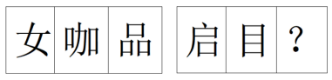 【答案】D【解析】題干圖形由漢字組成且常見的筆劃數(shù)和封閉區(qū)域無規(guī)律但各漢字筆劃分散,所以從部分?jǐn)?shù)的角度考慮,漢字的部分?jǐn)?shù)分別為7、6、5、4、(3),觀察選項(xiàng)D為3部分,所以選擇D項(xiàng)。