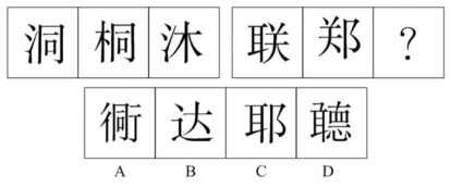 【答案】A【解析】題干圖形相鄰漢字都是左右結(jié)構(gòu),有相同的元素,前一個(gè)圖形左半部分與下一個(gè)相鄰圖形右半部分元素相同,所以本題選A。