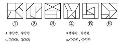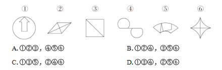 【答案】D【解析】圖形①③⑤中面積最小的封閉區(qū)域與外部輪廓的形狀一致,圖形②④⑥中面積最大的封閉區(qū)域與外部輪廓的形狀一致。故本題選D。