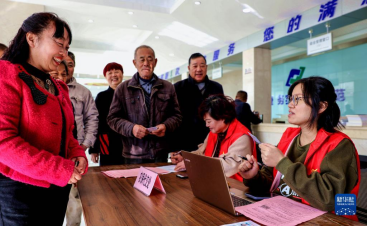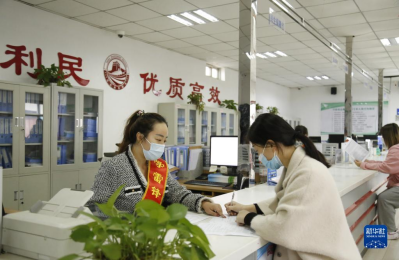 河北省邢臺(tái)市襄都區(qū)宴家屯鎮(zhèn)綜合服務(wù)中心工作人員協(xié)助辦事群眾填寫(xiě)相關(guān)表格(2022年3月30日攝)。新華社發(fā)(張馳攝)