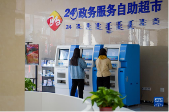 在內(nèi)蒙古自治區(qū)呼和浩特市玉泉區(qū)政務(wù)服務(wù)中心的“24小時(shí)政務(wù)服務(wù)自助超市”,市民在自助辦理發(fā)票業(yè)務(wù)(2022年4月2日攝)。新華社記者李志鵬攝
