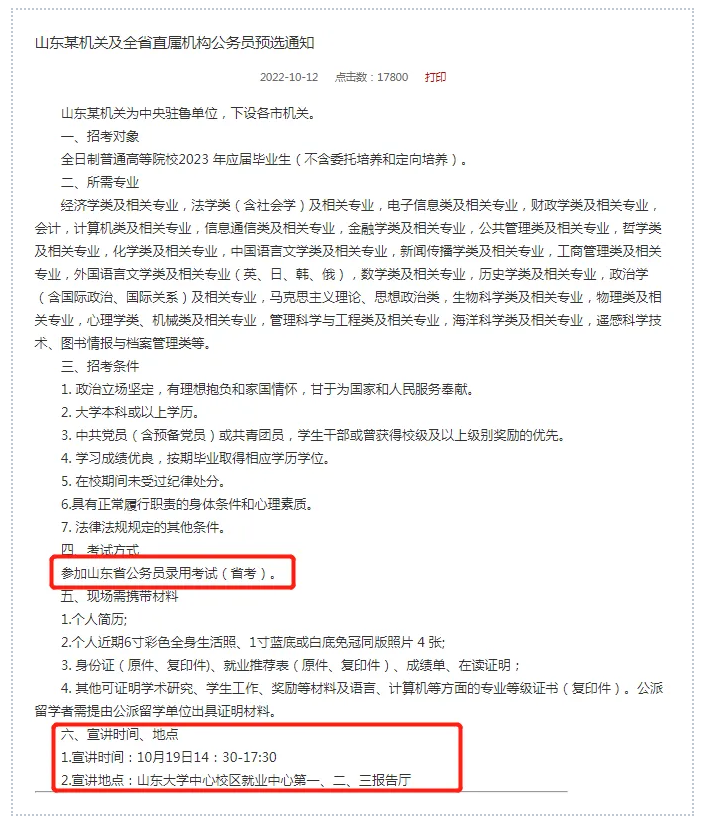 重磅!2023年山東省考有消息了!山東某機關及全省直屬機構公務員預選通知發(fā)布,一起來看下詳情內容: