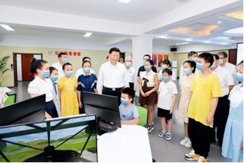 2022年8月16日至17日,中共中央總書記、國家主席、中央軍委主席習(xí)近平在遼寧考察。這是17日下午,習(xí)近平在沈陽市皇姑區(qū)三臺子街道牡丹社區(qū)群眾活動中心,同幸福教育課堂的孩子們親切交流。新華社記者申宏/攝