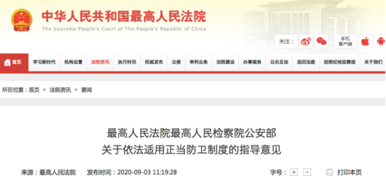 關(guān)于依法適用正當(dāng)防衛(wèi)制度的指導(dǎo)意見(jiàn)