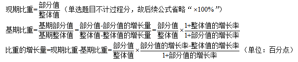 根據(jù)例題我們可以得到,在求解基期比重時,如果部分和整體都是以增長率的形式描述的增長,