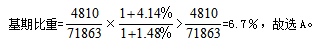 【答案】A【解析】分析題干發(fā)現(xiàn),問題時間與材料所給不一致,最終的問題是求解比重,因此本題所求的是基期比重。根據(jù)材料中的數(shù)據(jù)找出部分和整體的基期值。題干所給的國有建筑企業(yè)數(shù)和建筑業(yè)企業(yè)總數(shù)都是以增長率的形式描述的增長,結(jié)合公式,