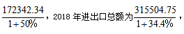 例1:2019年我國進出口總額315504.75億元,比上年增加34.4%,其中出口總額172342.34億元,比上年增加50.0%。