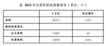 例2:判斷:2015年全國公立醫(yī)院數(shù)占醫(yī)院總數(shù)的比重同比下降。