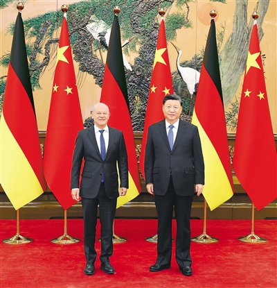 習(xí)近平指出,你是中共二十大召開后首位來(lái)訪的歐洲領(lǐng)導(dǎo)人,這也是你就任以來(lái)首次訪華。相信訪問(wèn)將增進(jìn)雙方了解和互信,深化各領(lǐng)域務(wù)實(shí)合作,為下階段中德關(guān)系發(fā)展做好謀劃。