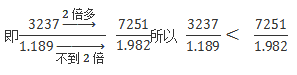 【解析】分子7251大于3237的2倍,分母1.982小于1.189的2倍,