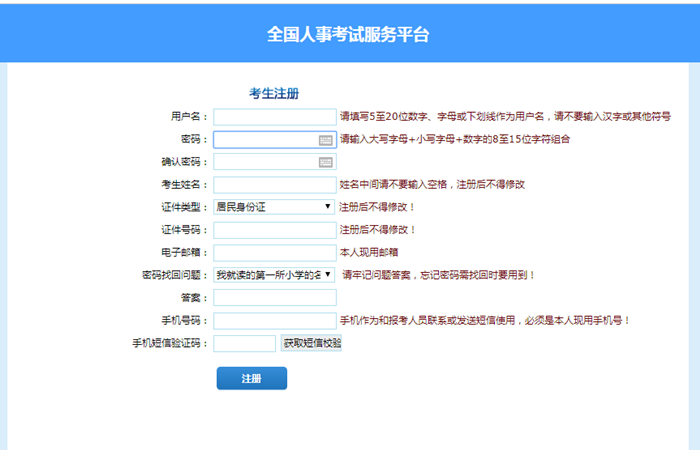報(bào)考者注冊(cè)時(shí)注意事項(xiàng):