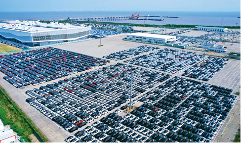 2022年以來,伴隨著我國汽車企業(yè)競爭力、產(chǎn)品力的增強(qiáng),以及海外需求的增長,我國汽車出口延續(xù)上升勢頭。圖為2022年8月13日,上海自貿(mào)區(qū)臨港新片區(qū)陸域一類口岸開放碼頭——南港碼頭,排列整齊的汽車整裝待發(fā)。人民圖片計海新/攝