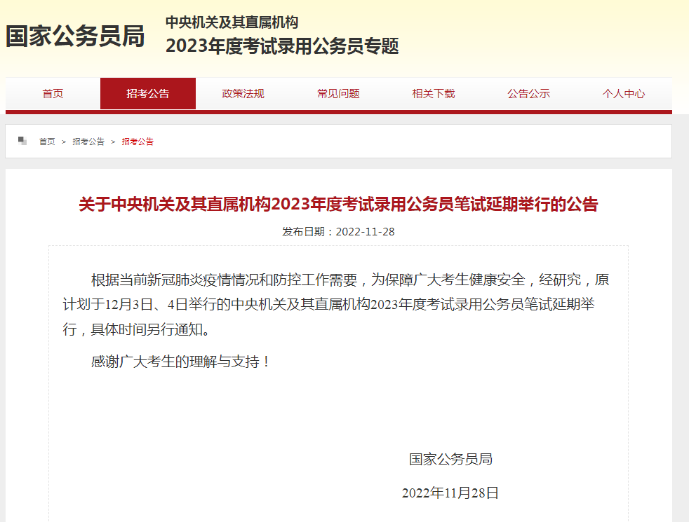2023年國家公務(wù)員考試筆試延期舉行! 這可是歷年國考頭一回~