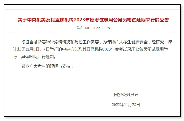 2023年國家公務(wù)員考試筆試延期舉行,這可是歷年國考頭一回!