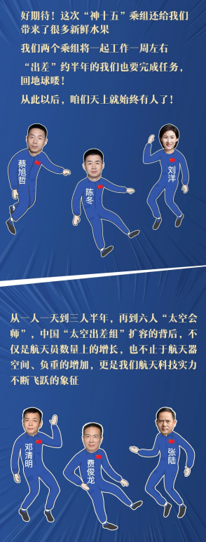 費俊龍曾執(zhí)行神舟六號載人飛行任務并擔任指令長,鄧清明和張陸均是首次執(zhí)行載人飛行任務。
