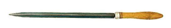 1、匕首:帶有刀柄、刀格和血槽,刀尖角度小于60度的單刃、雙刃或多刃尖刀(見圖一)。