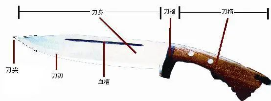 1、刀柄:是指刀上被用來握持的部分(見圖六)。2、刀格(擋手):是指刀上用來隔離刀柄與刀身的部分(見圖六)。