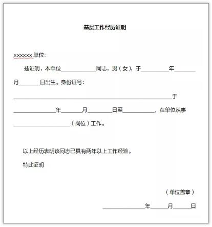2、基層工作經(jīng)歷證明