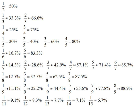 特征數字法就是利用百分數和分數之間的相互轉化,將列式中的百分數近似地轉化成一些特定的分數,從而達到簡化計算的一種方法。