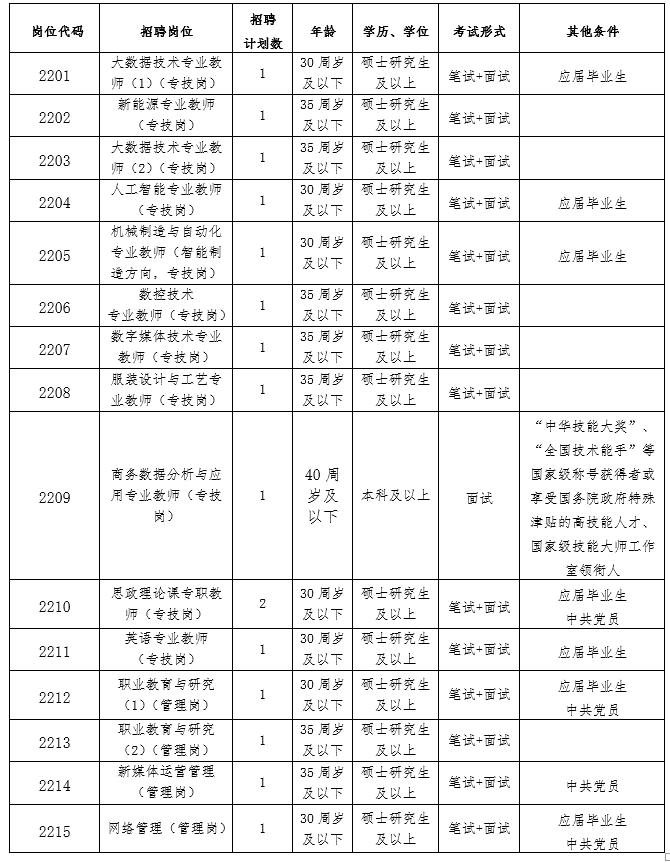 具體條件見附件1《天津輕工職業(yè)技術(shù)學(xué)院2023年(第一批)招聘計(jì)劃表》