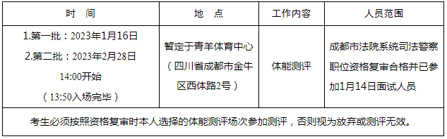 關(guān)于2022年成都市法院系統(tǒng)公開考試錄用公務(wù)員面試及司法警察職位體能測評公告