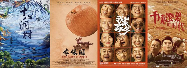 書寫美好中國故事,用銀幕禮贊偉大時代?!妒硕创濉?、《李保國》、《我和我的家鄉(xiāng)》、《千頃澄碧的時代》等電影扎根鄉(xiāng)土,回望脫貧攻堅戰(zhàn)的感人事跡和先鋒人物,實現了主流價值與電影藝術的完美融合。圖為相關電影海報。中國文聯(lián)供圖