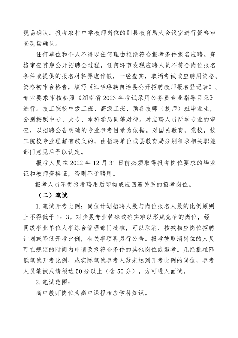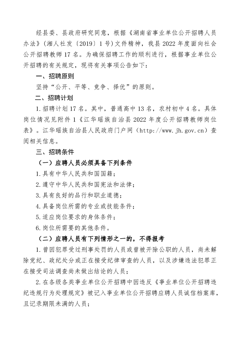 江華瑤族自治縣2022年度公開(kāi)招聘教師公告