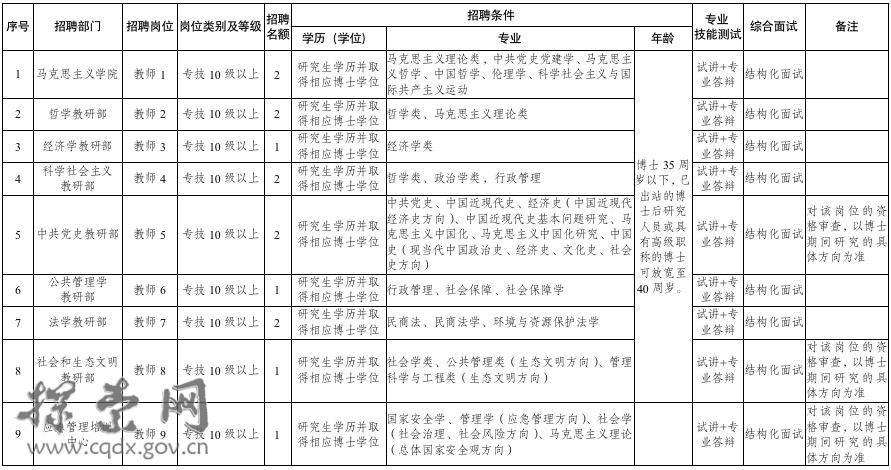 本次面向社會(huì)公開招聘專業(yè)技術(shù)人員14名,具體崗位條件詳見《中共重慶市委黨校 重慶行政學(xué)院2023年公開招聘專業(yè)技術(shù)人員崗位情況表》(附件1,以下簡(jiǎn)稱《崗位情況表》)。