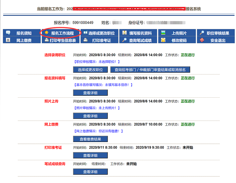 1、點(diǎn)擊報名工作流程會顯示如圖2-1頁面: