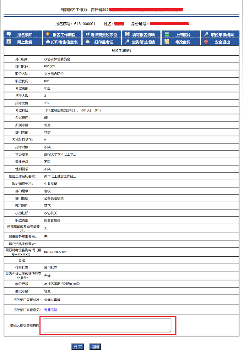 注:復(fù)核不通過將不允許重新選擇該職位,只可選擇其他職位。