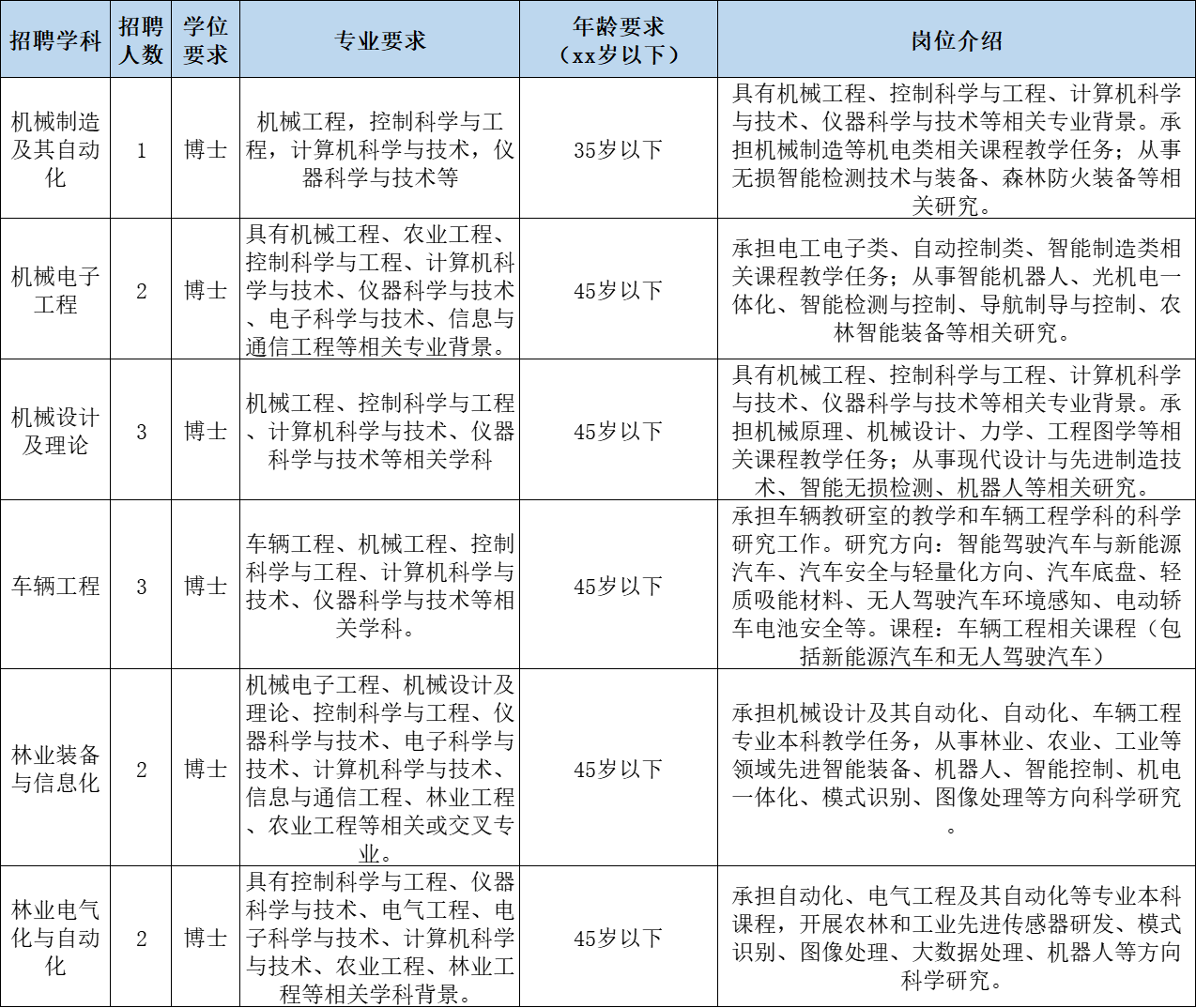 北京林業(yè)大學(xué)工學(xué)院2023年教師崗位招聘啟事