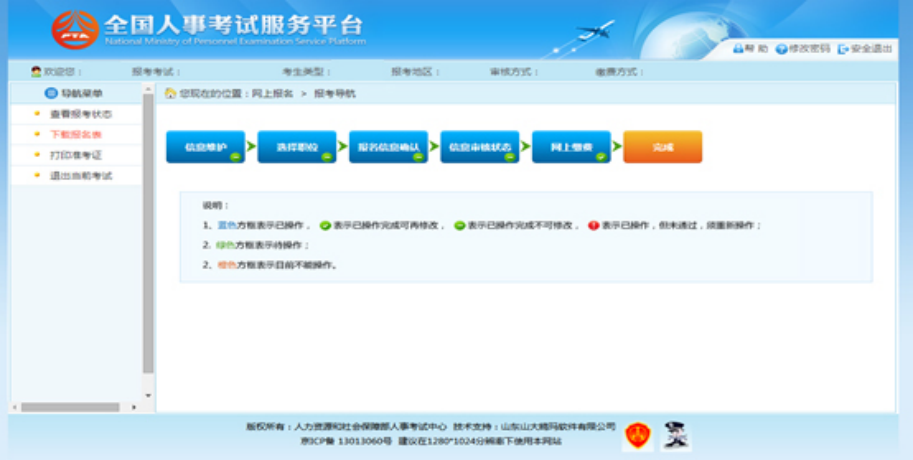 ?、蹐罂既藛T填寫報名信息并保存。報考人員要慎重、如實填報相關(guān)信息。