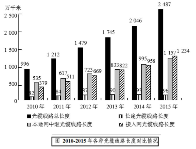 1.2015年全國新建光纜中,接入網(wǎng)光纜線路長度所占比重為:( )