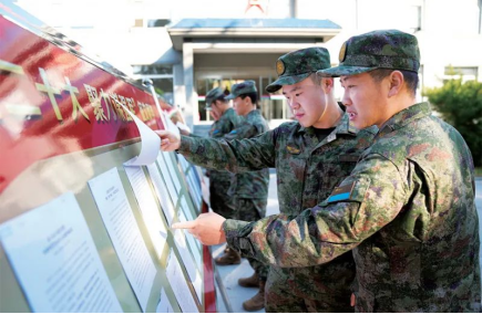 黨的二十大勝利召開后,在大江南北的座座軍營,在野外駐訓(xùn)地,在邊關(guān)哨所,在任務(wù)點(diǎn)位,全軍各部隊通過舉行多種活動,學(xué)習(xí)宣傳貫徹黨的二十大精神。圖為空軍某后勤訓(xùn)練基地學(xué)習(xí)黨的二十大精神征文展評活動現(xiàn)場。申衛(wèi)紅/攝