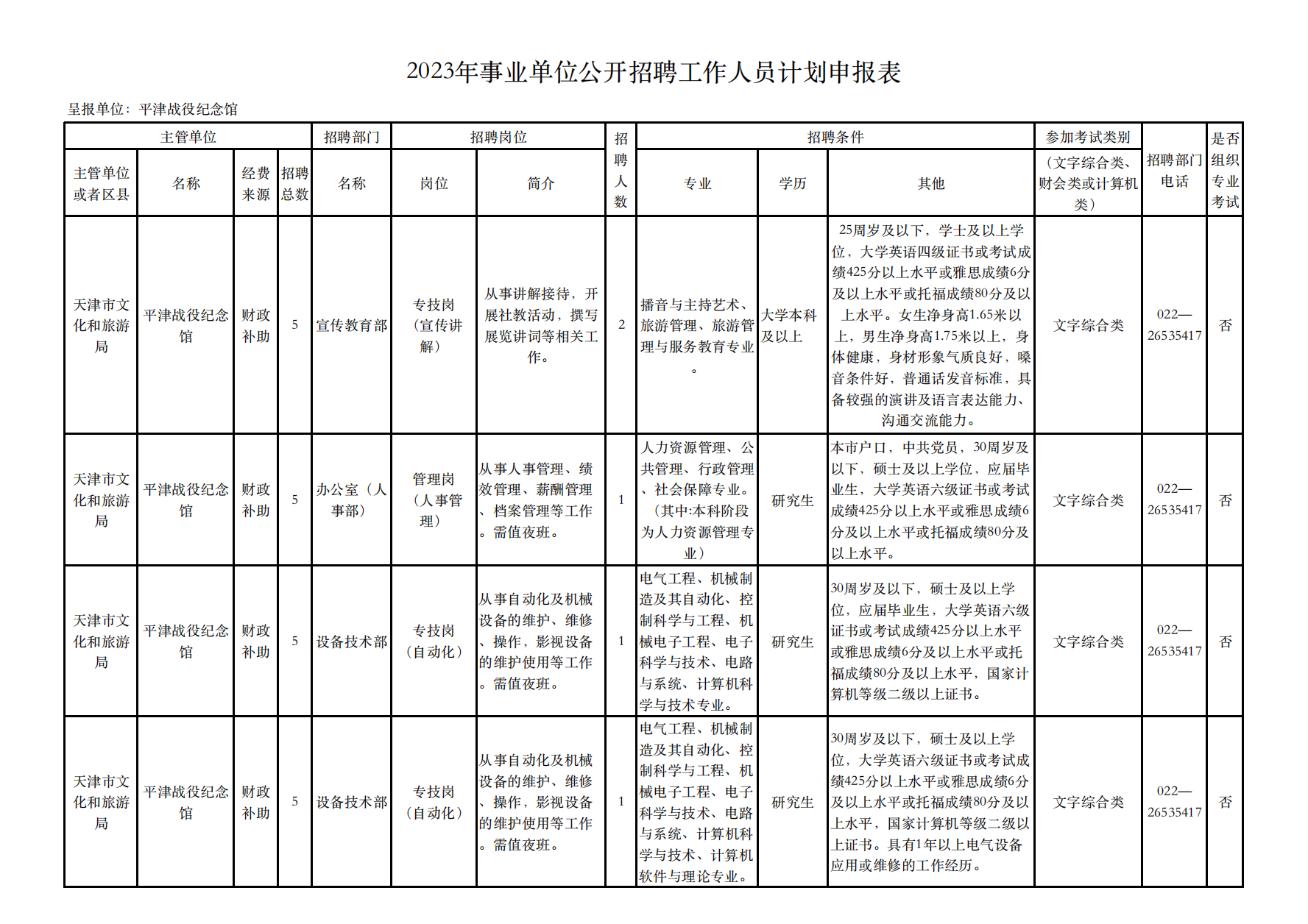 (一)招聘單位名稱:平津戰(zhàn)役紀念館。