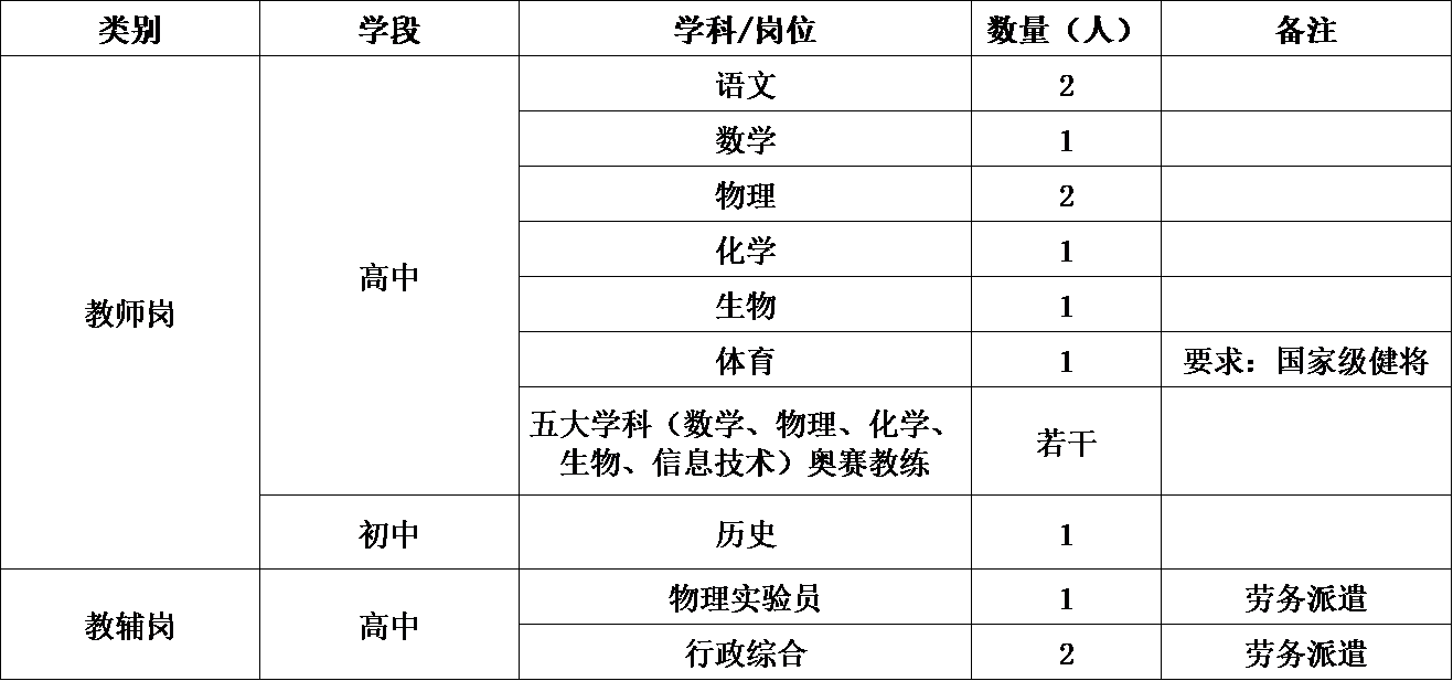 根據(jù)學(xué)校事業(yè)發(fā)展規(guī)劃和人才招聘計(jì)劃,我校2023年春季面向社會(huì)公開(kāi)招聘教師和教輔人員,具體公告如下: