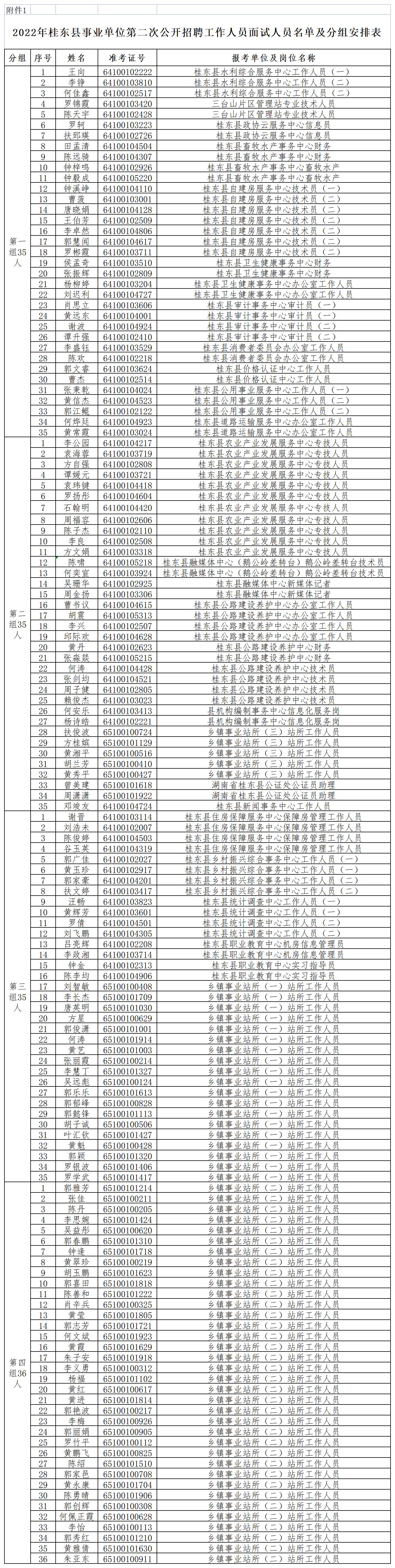 附件1:2022年桂東縣事業(yè)單位第二次公開招聘工作人員面試人員名單及分組安排表.xls